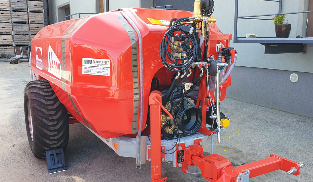 Profesjonalny wysokowydajny opryskiwacz sadowniczy jednowentylatorowy z tradycyjnym ciągiem przeznaczony jest do ochrony plantacji: chmielu, wysokich drzew leszczyny, wiśni i śliwy.