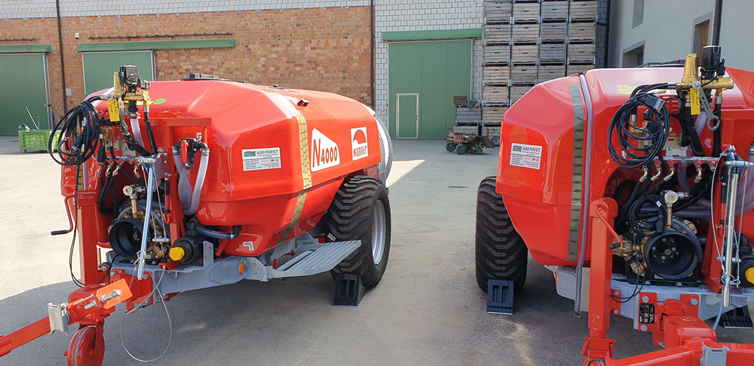 • Podwójne głowice dysz rozpylaczy z blokadą kapania, obrotowe i zamykane, końcówki dysz ATR do wyboru oraz pistolety Halterau.